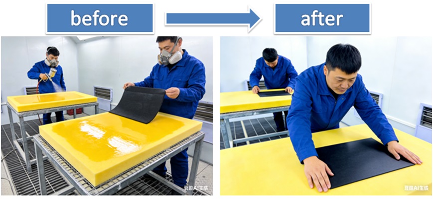 采用這款自粘膠方案,座椅廠全程無需噴膠作業(yè)。
