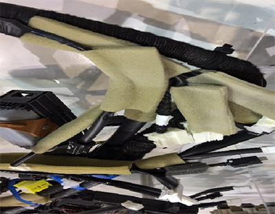 | 汽車部件中主要應(yīng)用概覽 | 1、汽車衣帽鉤雙組份吸音棉背膠;2、售后市場(chǎng)改裝地毯背面隔音棉背膠;3、門板內(nèi)襯吸音棉背膠;4、汽車空調(diào)管道包覆低密度薄型PU發(fā)泡材/雙組份保溫棉背膠;5、座椅發(fā)泡工藝模具腔體定位無紡布&橡磁片背膠。 | 1、橡膠發(fā)泡型海綿涂膠,用于方向盤骨架包覆、前后車燈緩沖墊片、后視鏡緩沖墊片;2、汽車頂棚、車門等線束段子用的降噪背膠海綿涂膠、無紡布涂膠,如PP毛氈,PET毛氈,以及聚脂、聚醚類的發(fā)泡PU背膠海綿。 | 1、儀表臺(tái)\前后風(fēng)擋組裝用半開半閉孔EPDM三元乙丙泡棉密封條背膠,汽車尾燈及高位剎車燈組裝用CR蘆丁橡膠發(fā)泡密封條背膠;2、空調(diào)出風(fēng)口EPDM/PE墊片密封條背膠;3、汽車頂棚、車門線束用固定毛氈背膠。 | 1、對(duì)VOC和氣味敏感的汽車空調(diào)接駁口、蒸發(fā)器海綿背膠、前后艙出風(fēng)口泡綿背膠。2、汽車線束固定消音用耐反翹海綿背膠、卷粘PU泡棉背膠。3、線束袖套型保護(hù)片背膠。4、安全帶束位調(diào)節(jié)器消音毛氈背膠,耐摩擦抗剪切。 | 1、對(duì)尺寸穩(wěn)定性和重工性要求較高的座椅加熱墊片背膠;2、座椅打孔通風(fēng)海綿背膠;3、座椅頭枕包覆海綿背膠。該款網(wǎng)格緯線可手?jǐn)?,?jīng)線強(qiáng)度高,容易沖型加工,兼具無基材膠帶的服帖性與無紡布膠帶的重工與尺寸穩(wěn)定性。 | 簇絨地毯與PP蜂窩板復(fù)合背膠,地毯吸音棉,方向盤骨架包覆皮革類背膠,車門、變速箱扶手機(jī)織布/皮革貼合IXPE發(fā)泡材,衣帽架GMT板背膠貼合PVC皮革/機(jī)織布,行李箱蓋板毛氈復(fù)合EPE發(fā)泡板或PP蜂窩板,利于后段加工。 |
