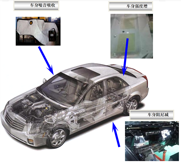 補(bǔ)強(qiáng)膠片能夠非常好地加強(qiáng)汽車薄板的強(qiáng)度;同時(shí)丁基橡膠制成的粘接層上,還復(fù)合有一層強(qiáng)力粘接層,大大提高了其粘結(jié)能力;達(dá)到汽車薄鋼鈑金的強(qiáng)度增加和降噪減震的作用。